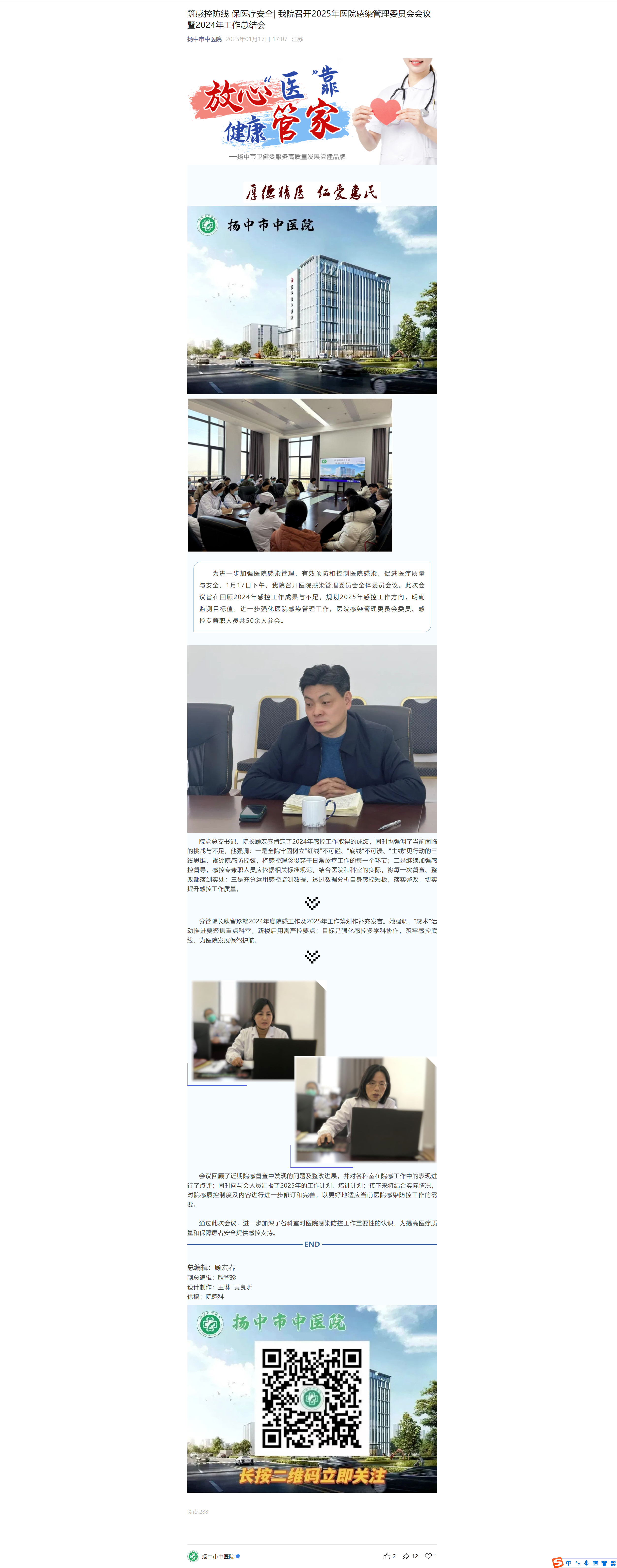 筑感控防线 保医疗安全| 我院召开2025年医院感染管理委员会会议暨2024年工作总结会