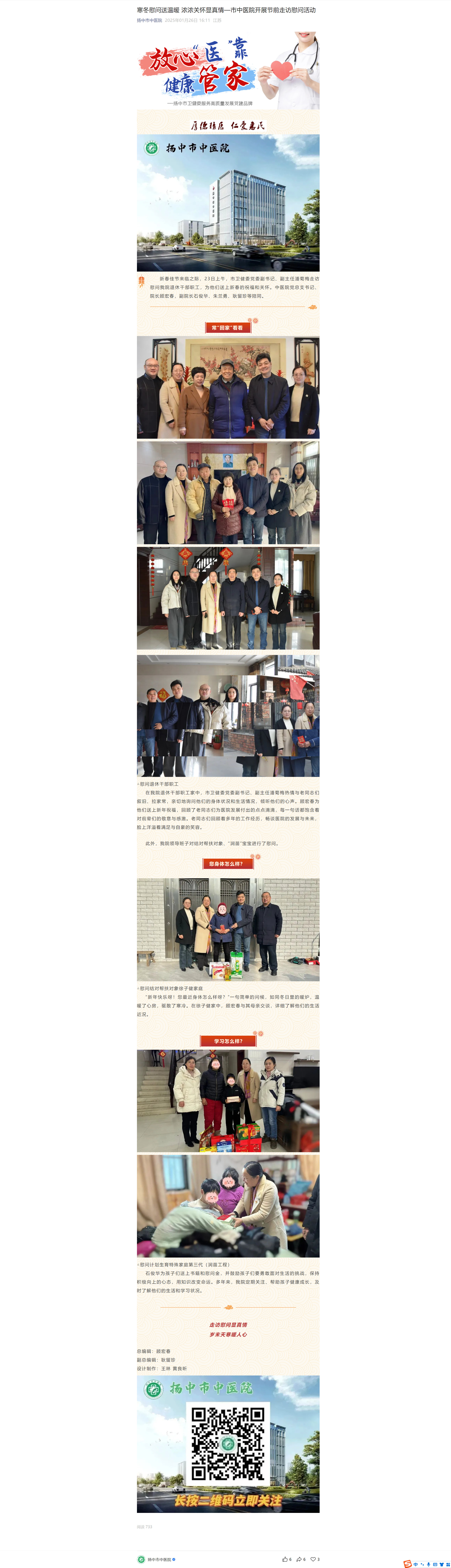 寒冬慰问送温暖 浓浓关怀显真情—市中医院开展节前走访慰问活动