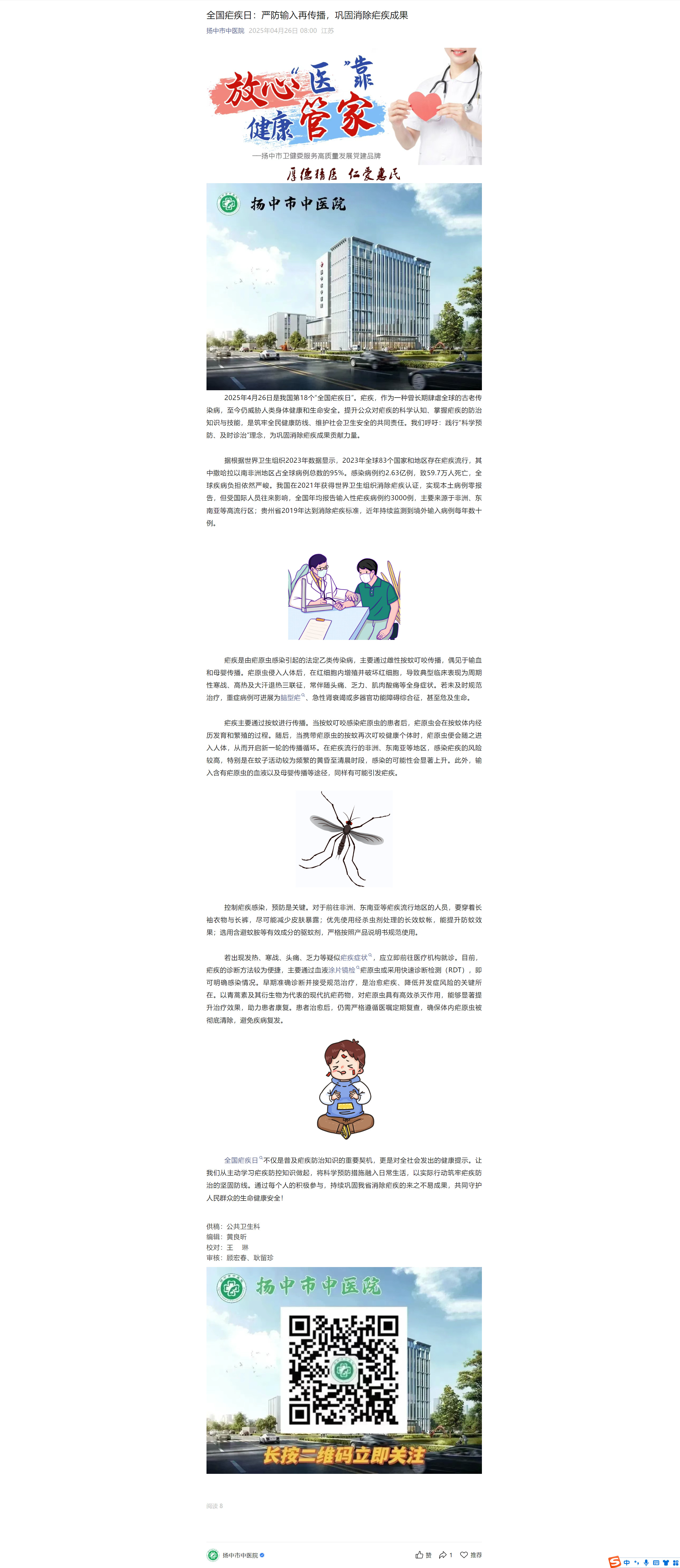 全国疟疾日:严防输入再传播,巩固消除疟疾成果