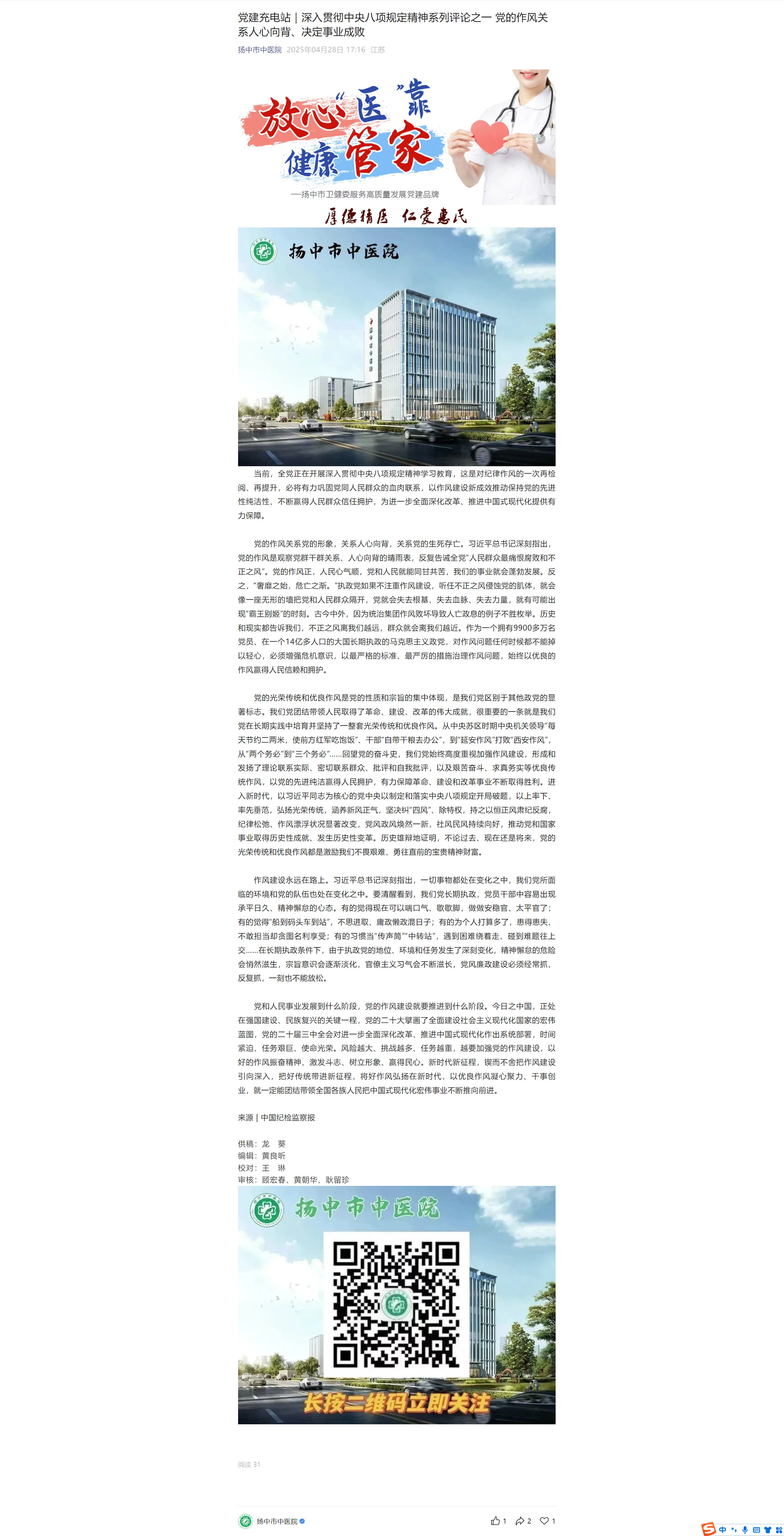 党建充电站|深入贯彻中央八项规定精神系列评论之一 党的作风关系人心向背、决定事业成败