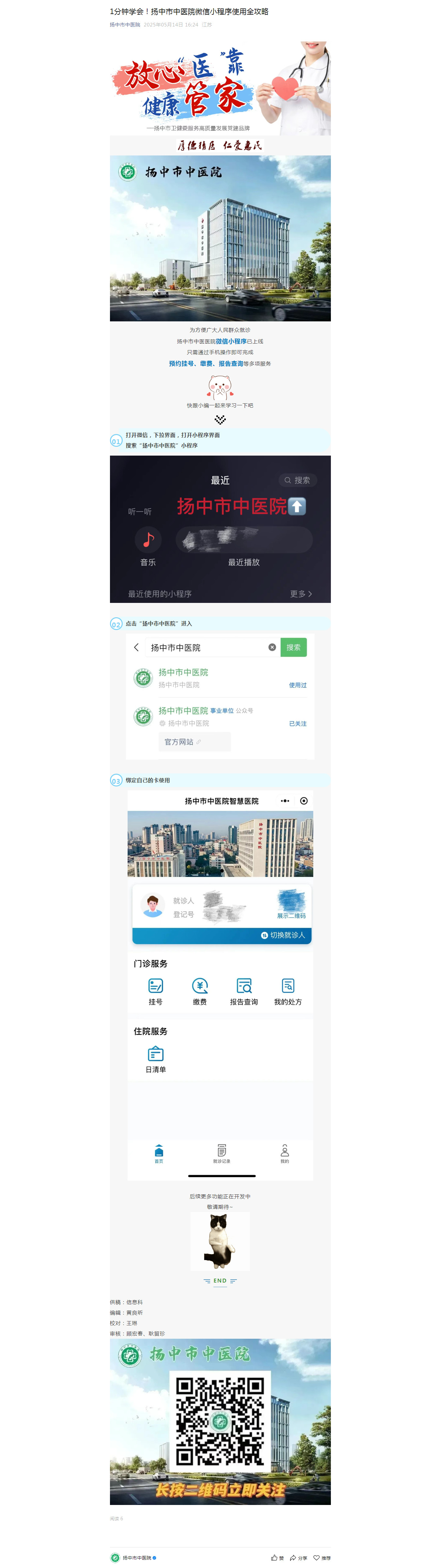 1分钟学会!扬中市中医院微信小程序使用全攻略